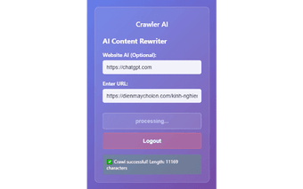 مع المصادقة الآمنة وتركيزها على خصوصية المستخدم، لا تجمع الإضافة بيانات شخصية وتضمن بقاء جميع المعلومات محلية. العملية بسيطة: يقوم المستخدمون بتسجيل الدخول، وإدخال عنوان URL، وترك الذكاء الاصطناعي يتولى عملية إعادة الكتابة. كما تقدم الإضافة تنزيلات منظمة للمحتوى المعاد كتابته، مما يجعلها حلاً فعالاً لتوليد مقالات عالية الجودة من المواد الموجودة.
